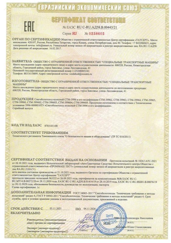- Вездеход на шинах сверхнизкого давления СТМ-3996 и их модификации;