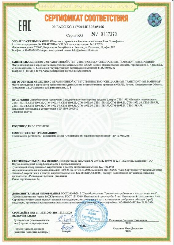 - Гусеничный снегоболотоход СТМ-1993 «Енисей» и их модификации;