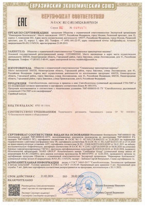 - Гусеничный двухзвенный снегоболотоход СТМ-7087 и их модификации.