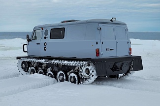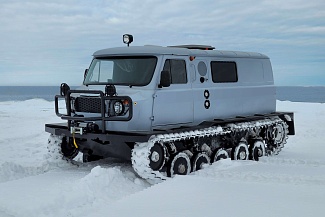 Плавающий 8-и местный вездеход. ДВС: CUMMINS ISF 2.8 / Турбодизель / 148 л.с., КПП: 5-и ступенчатая, механическая, доп. передача: двухступенчатая, механическая, Гусеницы стальные ОШ