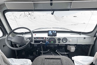Объёмный салон позволяет с комфортом разместить 8 человек (включая водителя), или различное технологическое оборудование до 1350 кг. Переднее сиденье пассажира и сиденье водителя оснащены трехточечными ремнями безопасности, пассажирские сиденья салона оснащены поясными ремнями. В салоне штатный жидкостной отопитель. По заказу устанавливаем автономный воздушный отопитель.