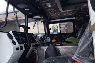 Объёмный салон позволяет с комфортом разместить 2 человек (включая водителя), или различное технологическое оборудование до 1330 кг. Переднее сиденье пассажира и сиденье водителя оснащены трехточечными ремнями безопасности. В кабине штатный жидкостной отопитель. По заказу устанавливаем автономный воздушный отопитель.