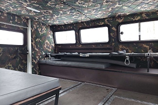 Объёмный салон позволяет с комфортом разместить 8 человек (включая водителя), или различное технологическое оборудование до 1280 кг. Переднее сиденье пассажира и сиденье водителя оснащены трехточечными ремнями безопасности, пассажирские сиденья салона оснащены поясными ремнями. В салоне штатный жидкостной отопитель. По заказу устанавливаем автономный воздушный отопитель.
