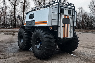 Мест: 6 / 2 спальных; Грузоподъёмность: 800 кг; ДВС: RAYWIN / 60,5 л.с; Топливо:120 л. Категория прав АII. Предназначен для решения сложных задач в условиях экстремального бездорожья, легко проходит заболоченную местность, слабонесущие грунта, по глубокому снегу, пересеченной местности, амфибия.