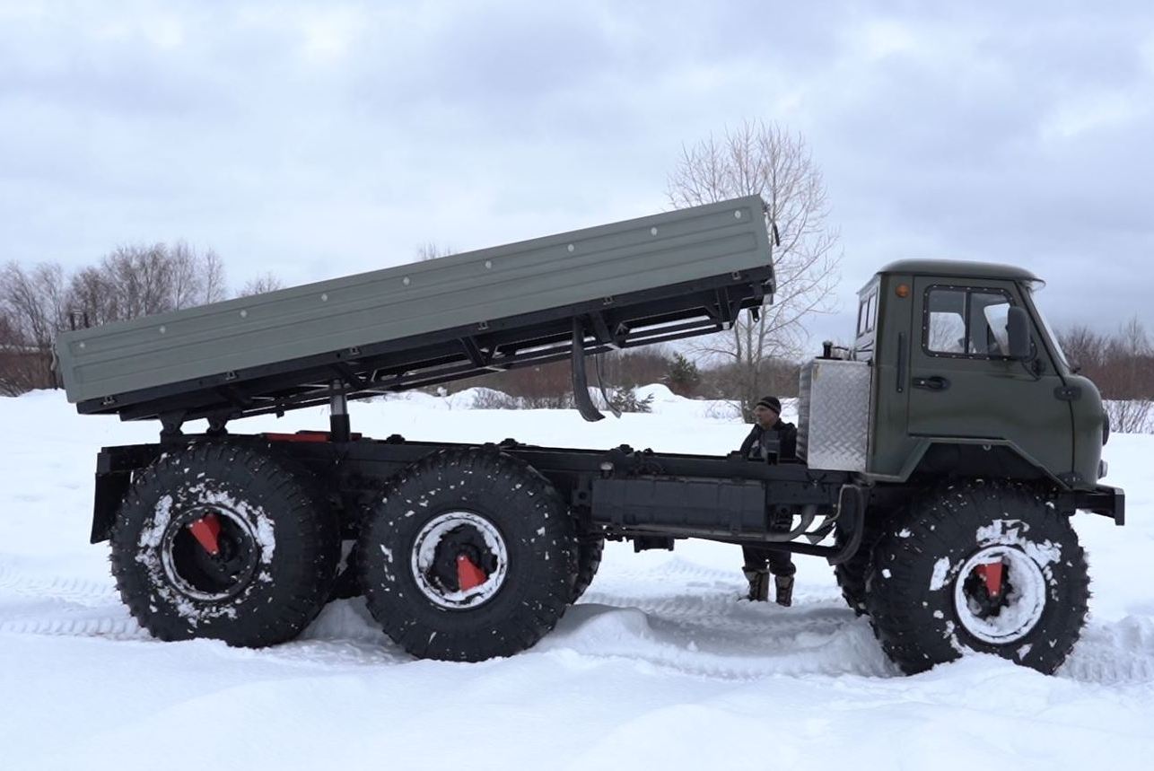 Шины 1300х700-21”имеют 4 слоя корда и несущую способность 2000 кг на колесо. За счёт увеличения толщины шины обладают большей устойчивостью к проколам и порезам. Они разработаны для перевозки тяжёлых грузов в условиях бездорожья и по слабонесущим грунтам. На данном вездеходе колёса сверхнизкого давления взаимозаменяемые с колёсами ГАЗ-33081 (ГАЗ-66). Категория прав А III.