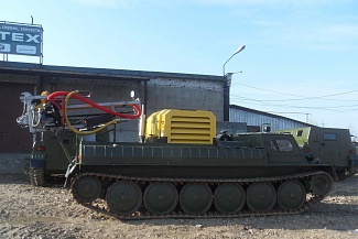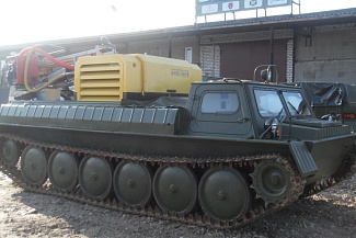 На снегоболотоходе установлена дизельная компрессорная установка КВ-5/10П предназначенная для работы до пяти отбойных молотков, двух перфораторов и других пневмоинструментов.