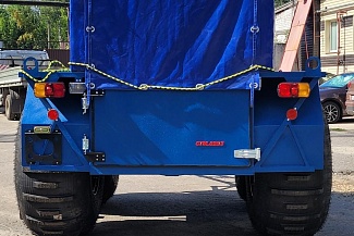 Прицеп оснащен шинами сверхнизкого давления, что позволяет перевозить грузы весом до 1000 кг на скорости до 50 км/ч.