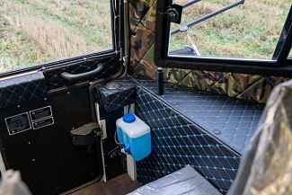 | Кузов | Цельнометаллический, имеет герметичную лодку. Рама - стальная, интегрирована в кузов. Верх: алюминиевый. Передняя дверь - распашная с подъёмной рамкой лобового стекла и одна задняя дверь.Утепление салона 25 мм. Сиденья анатомические. |