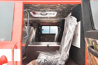 Объёмный салон позволяет с комфортом разместить 15 человек (включая водителя), или различное технологическое оборудование до 1980 кг. Переднее сиденье пассажира и сиденье водителя оснащены трехточечными ремнями безопасности, пассажирские сиденья салона оснащены поясными ремнями. В кабине штатный жидкостной отопитель. По заказу устанавливаем автономный воздушный отопитель.