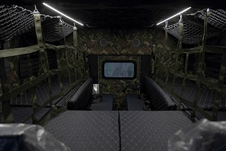 Объёмный салон даёт возможность размещения, вместо применяемых сидений, различного технологического оборудования по желанию заказчика и может быть доработан по Вашему варианту комфортабельности.
