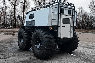 Категория прав АII; Мест: 6 / 2 спальных; Грузоподъёмность: 800 кг; ДВС: RAYWIN / 60,5 л.с; Топливо:120 л. Категория прав АII. Предназначен для решения сложных задач в условиях экстремального бездорожья, легко проходит заболоченную местность, слабонесущие грунта, по глубокому снегу, пересеченной местности, амфибия.