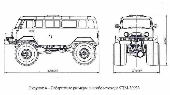 Вездеход на шинах низкого давления СТМ-39933 (4х4) изготовляется с кузовом УАЗ-220695 Автобус. (доработанный, удлиненный, утеплённый).