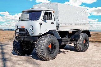 Вездеход на шинах низкого давления СТМ-39934 (4х4) изготовляется с кузовом УАЗ-3303 Бортовой (доработанный).