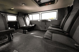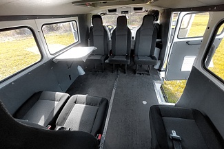 Восьмиместным салоне переднее сиденье пассажира и сиденье водителя оснащены трехточечными ремнями безопасности. Грузоподъёмность 1410 кг.