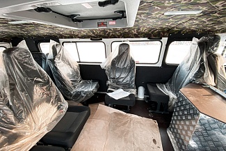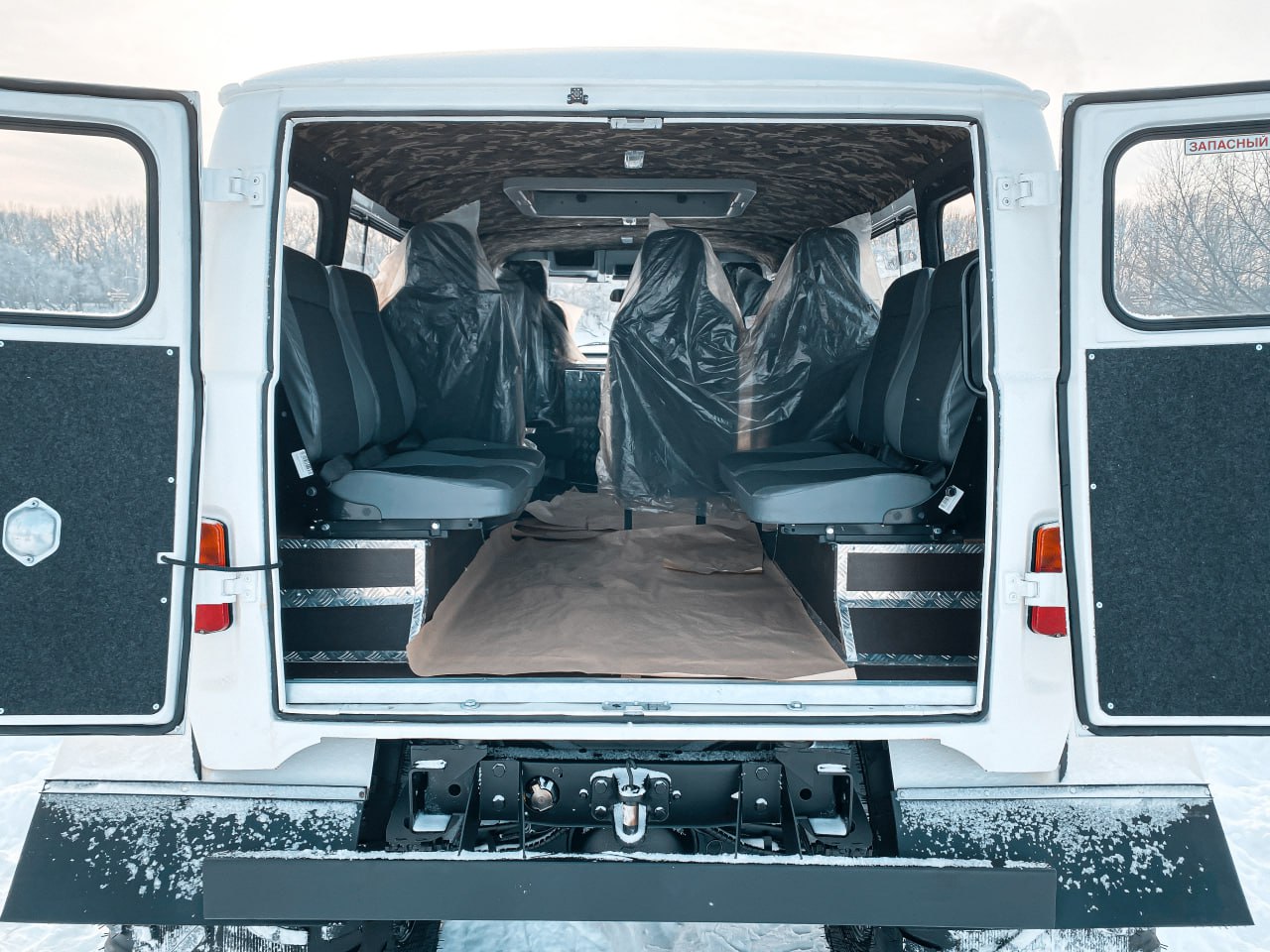 Восьмиместным утеплённым салоне переднее сиденье пассажира и сиденье водителя оснащены трехточечными ремнями безопасности. Грузоподъёмность 1410 кг.