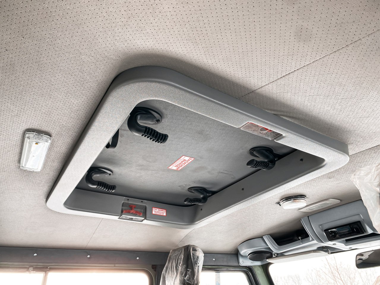 | Остекление | Лобовое стекло без подогрева, две боковые двери с движными стёклами и задняя стенка с 2-мя окнами |