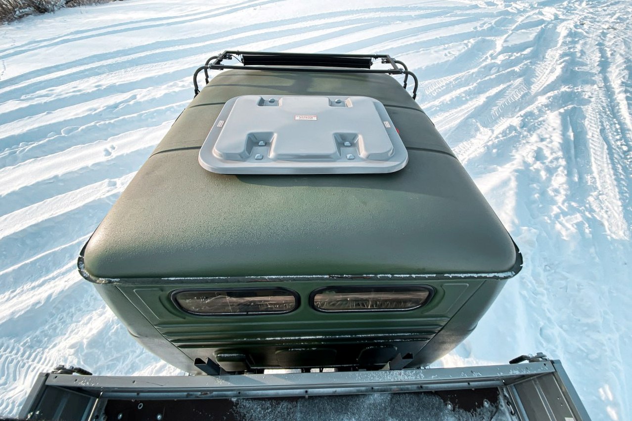Вездеход оборудован пятиместной утеплённой кабиной с тремя дверями, переднее сиденье пассажира и сиденье водителя оснащены трехточечными ремнями безопасности, пассажирские сиденья второго ряда оснащены поясными ремнями безопасности. В крыше кабины расположен аварийно-вентиляционный люк. Расширенные крылья и дополнительные подножки и поручни, облегчающие посадку.