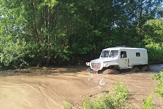 - Оригинальные мосты, усиленные, с бортовыми редукторами, полуоси полностью разгружены. («Большое Колесо»). Клиренс 630 мм, грузоподъёмность 600 кг. Передний ведущий мост - с управляемыми колёсами, привод осуществляется через карданную передачу. Передний и средний ведущие мосты - с дифференциальной связью, задний ведущий мост - подключаемый, без дифференциальной связи, с вентилируемыми дисковыми тормозными механизмами. Шины двухслойные 1300х600-21" Категория прав А II (внедорожные автотранспортные средства)