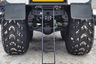 | Доп. оборудование в базовой комплектации | ГУР (гидроусилитель руля), Дисковые вентилируемые тормоза, фаркоп, Электрический компрессор подкачки шин, Камера заднего вида, Зеркало заднего вида с монитором, Сигнал заднего хода, Счётчик моточасов, Автомагнитола 1DIN (Bluetooth/MP3/USB) с 2-мя колонками, радиоантенна, Аптечка для ремонта шин, Домкрат, Набор вод. инструмента, Огнетушитель ОП-2, Медицинская аптечка, Знак аварийной остановки |